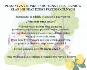 PLASTYCZNY KONKURS RODZINNY DLA UCZNIÓW klas I-III oraz DZIECI PRZEDSZKOLNYCH
