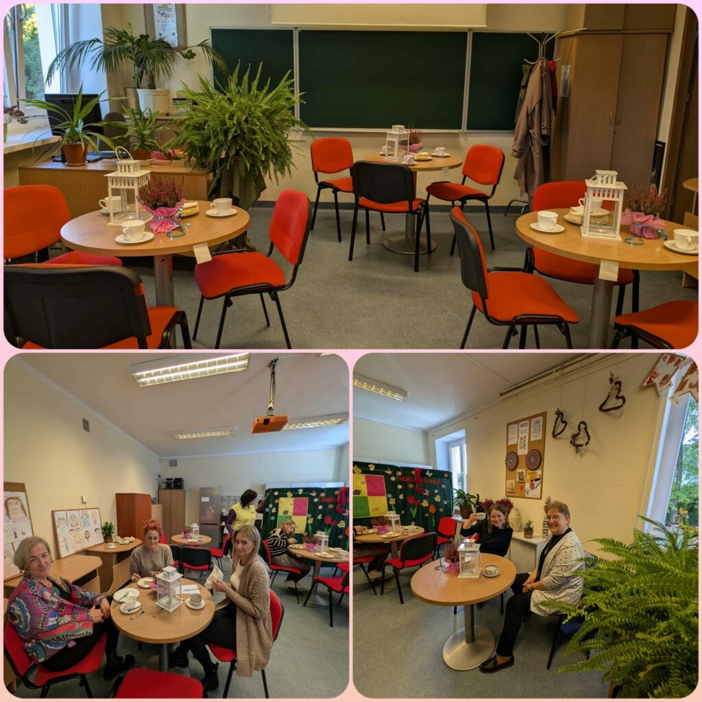 Na zakończenie dnia pracownicy szkoły mogli odpocząć w kawiarence przygotowanej przez Samorząd Uczniowski, co było gestem wdzięczności za ich pracę, jak również okazją do wspólnej rozmowy. Dziękujemy wszystkim za udział i współtworzenie wyjątkowej atmosfery tego dnia.