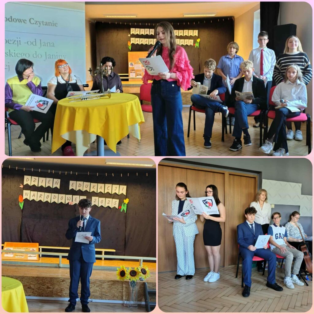 Rozpoczęliśmy od Narodowego Czytania zorganizowanego w związku z realizacją Narodowego Programu Rozwoju Czytelnictwa. Uczniowie klas 1-4 wysłuchali bajek Aleksandra Fredry pod hasłem „Aleksander Fredro dzieciom”. Utwory autora bawiły, ale także uczyły, że warto być rozsądnym, uczciwym i życzliwym wobec innych. Dla uczniów klas 5-8 zorganizowano spotkanie „Skrzydła poezji- od Jana Kochanowskiego do Janiny Porazińskiej”, podczas którego przypomniano postać wybitnego poety polskiego renesansu oraz fragmenty powieści biograficznej Janiny Porazińskiej „Kto mi dał skrzydła”, opowiadającej o dzieciństwie i młodości Jana Kochanowskiego. W czytaniu udział wzięli nauczyciele i uczniowie , którzy wspólnie przypomnieli, jak ważne miejsce w naszej kulturze zajmuje polska literatura.