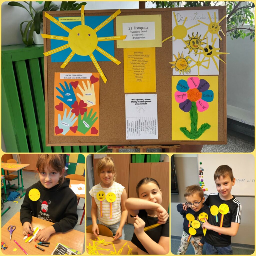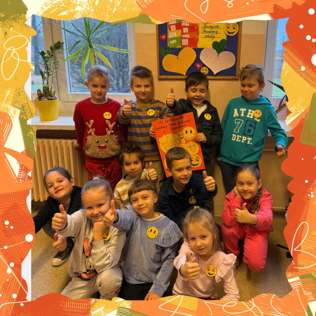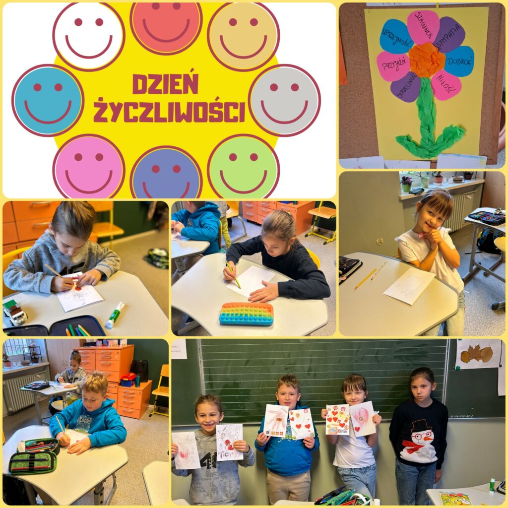 W klasach panowała miła atmosfera – każdy starał się powiedzieć komuś coś dobrego. Tworzyliśmy emotki z życzliwymi słowami, które wywoływały dużo radości. Wspólnie przygotowaliśmy też klasową kartkę na międzyszkolną akcję organizowaną przez SP 16.
