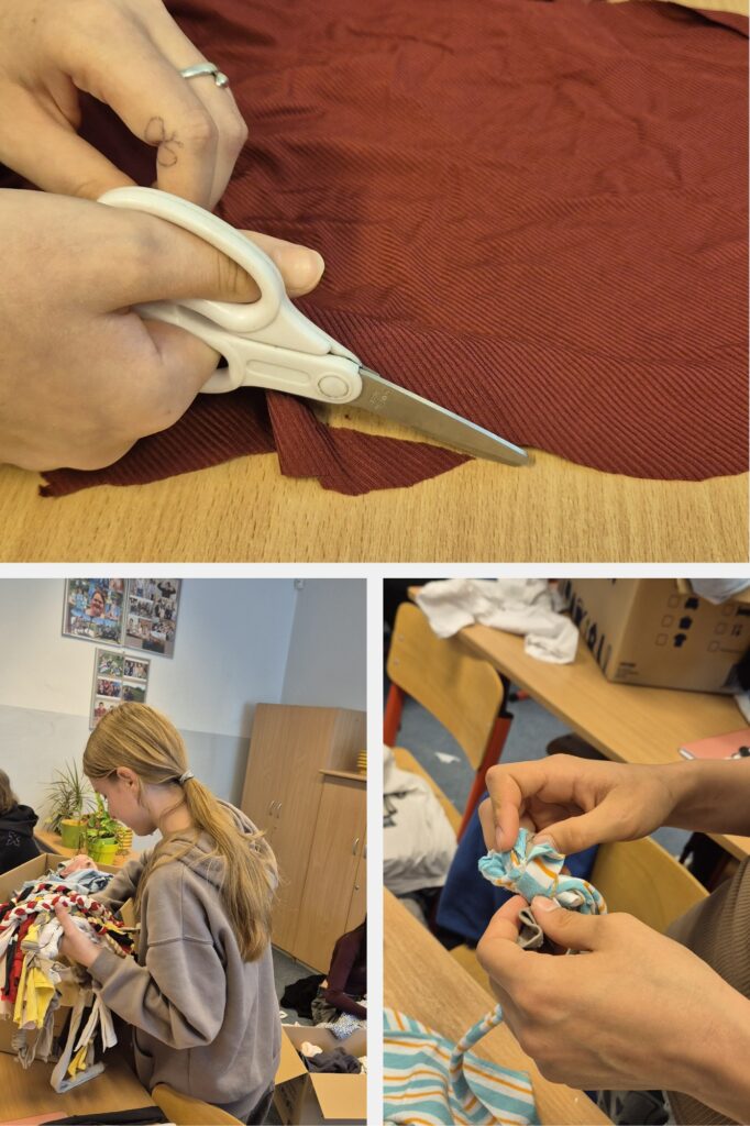 Ze zgromadzonych podczas szkolnej zbiórki podkoszulków – zaplatają szarpaki dla potrzebujących psiaków ze schroniska. Inicjatywie towarzyszy hasło przewodnie: