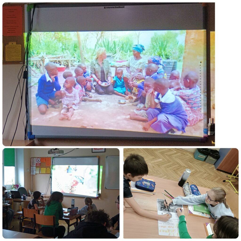 Uzupełnieniem lekcji było obejrzenie fragmentu programu Martyny Wojciechowskiej, przedstawiającego życie w afrykańskiej wiosce. Materiał filmowy pozwolił porównać literacki obraz Afryki z rzeczywistością oraz lepiej zrozumieć kulturę i codzienne życie mieszkańców tego kontynentu.