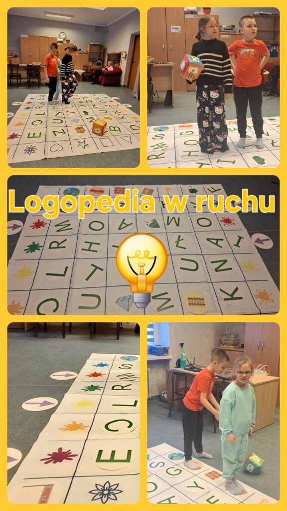 „Logopedia w ruchu” to świetna alternatywa dla dzieci z deficytem uwagi, nadpobudliwością czy zaburzeniami koncentracji. Podczas gry podłogowej uczniowie trenowali orientację w przestrzeni, rozróżnianie liter, odgadywanie i nazywanie obrazków, rozróżnianie głosek w nagłosie, śródgłosie i wygłosie. Logopedyczny detektyw pozwolił rozwijać orientację wzrokowo – przestrzenną oraz utrwalanie poznanych głosek. „logopedia w ruchu” łączy tradycyjną terapię logopedyczną z elementami ruchu, rytmu i zabawy aby wszechstronnie wspierać rozwój mowy zwłaszcza u dzieci, które potrzebują aktywizacji.