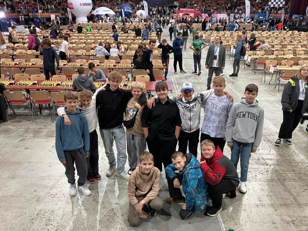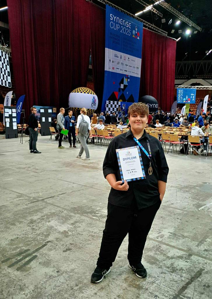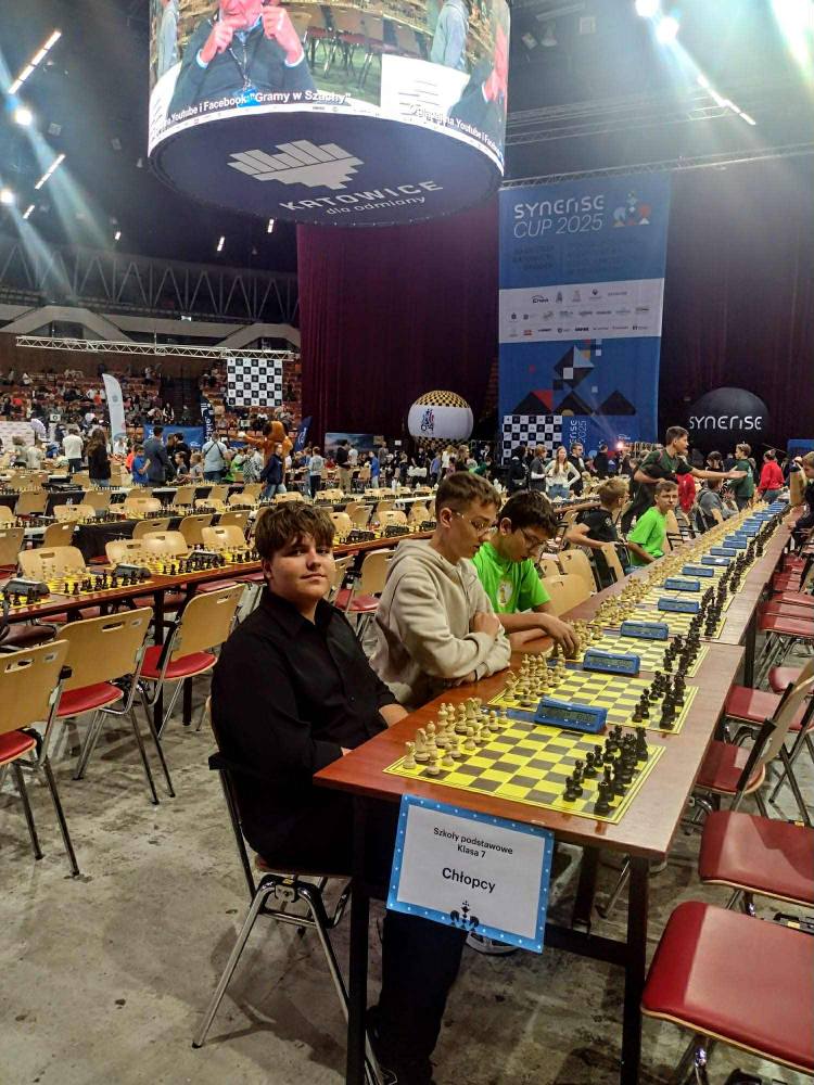 Oskar zaprezentował się z ogromnym zaangażowaniem i pasją, godnie reprezentując naszą szkołę na szachownicy. Towarzyszyli mu wierni kibice – koledzy i koleżanki z klasy – którzy mocno trzymali za niego kciuki! ![]()