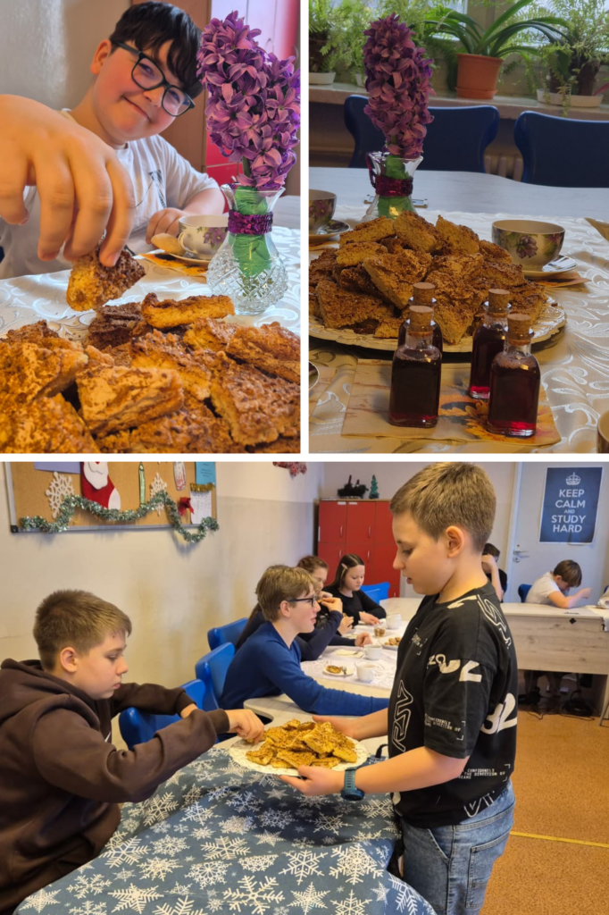Uczniowie klasy VI a przystąpili do projektu „Podwieczorek na Zielonym Wzgórzu”. Po zapoznaniu się z przepisami, zajęli się z zaangażowaniem ich realizacją. Estetycznie przygotowane stoły, starannie przygotowana zastawa oraz słodkie smakołyki stanowiły niezwykłą oprawę oczekiwania gościa – Ani Shirley.