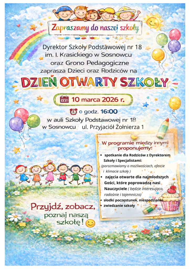 informujemy, że zgodnie z Zarządzeniem nr 29 Prezydenta Miasta Sosnowca z dnia 22 stycznia 2026 r. rekrutacja do klas I publicznych szkół podstawowych ogólnodostępnych, dla których organem prowadzącym jest Miasto Sosnowiec rozpocznie się 16 marca 2026 r.