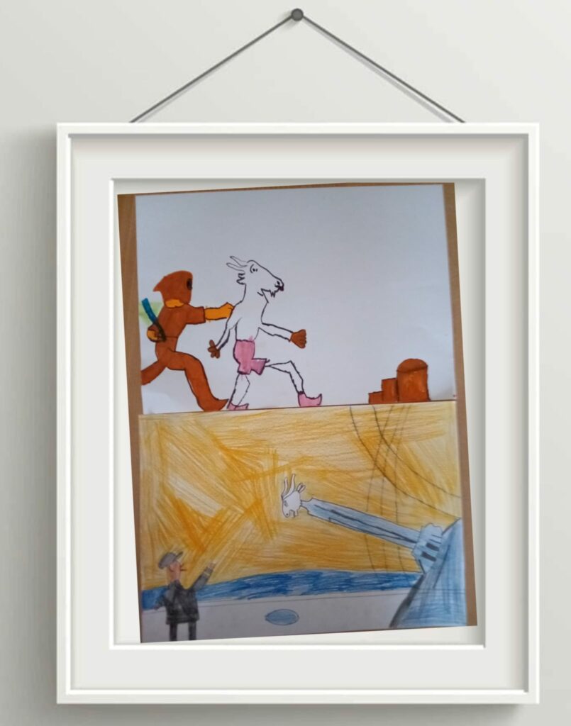 Dzieci przypomniały sobie postać znaną z bajek, a następnie poznały ją bliżej dzięki książce w formie komiksu. Uczniowie oglądali ilustracje, czytali fragmenty tekstu, rozmawiali o przygodach bohatera oraz wykonywali własne ilustracje inspirowane jego przygodami.