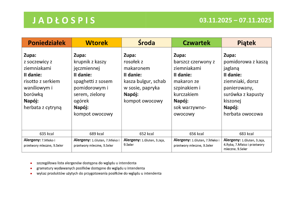 Opłata za obiady w listopadzie 2025r. – 108zł