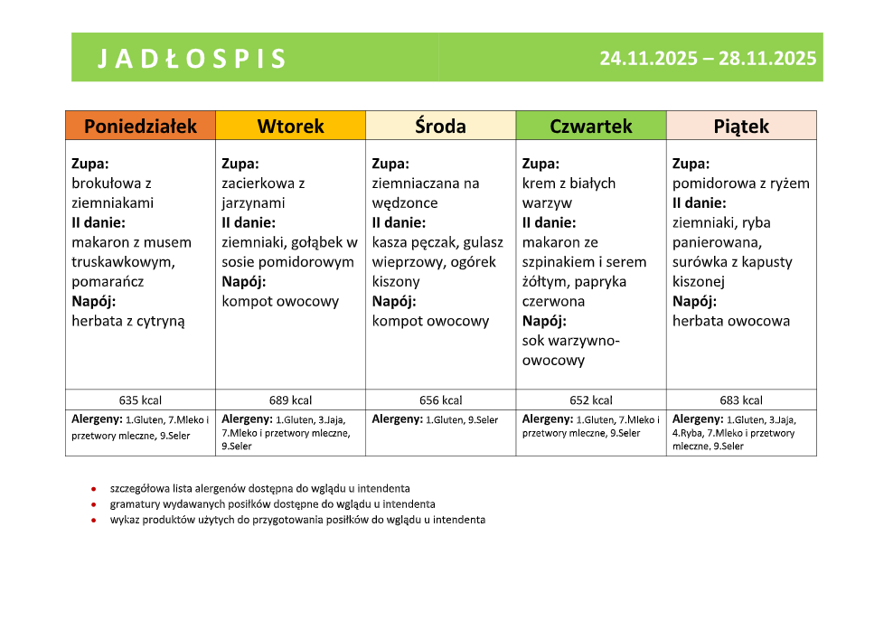 Opłata za obiady w listopadzie 2025r. – 108zł
