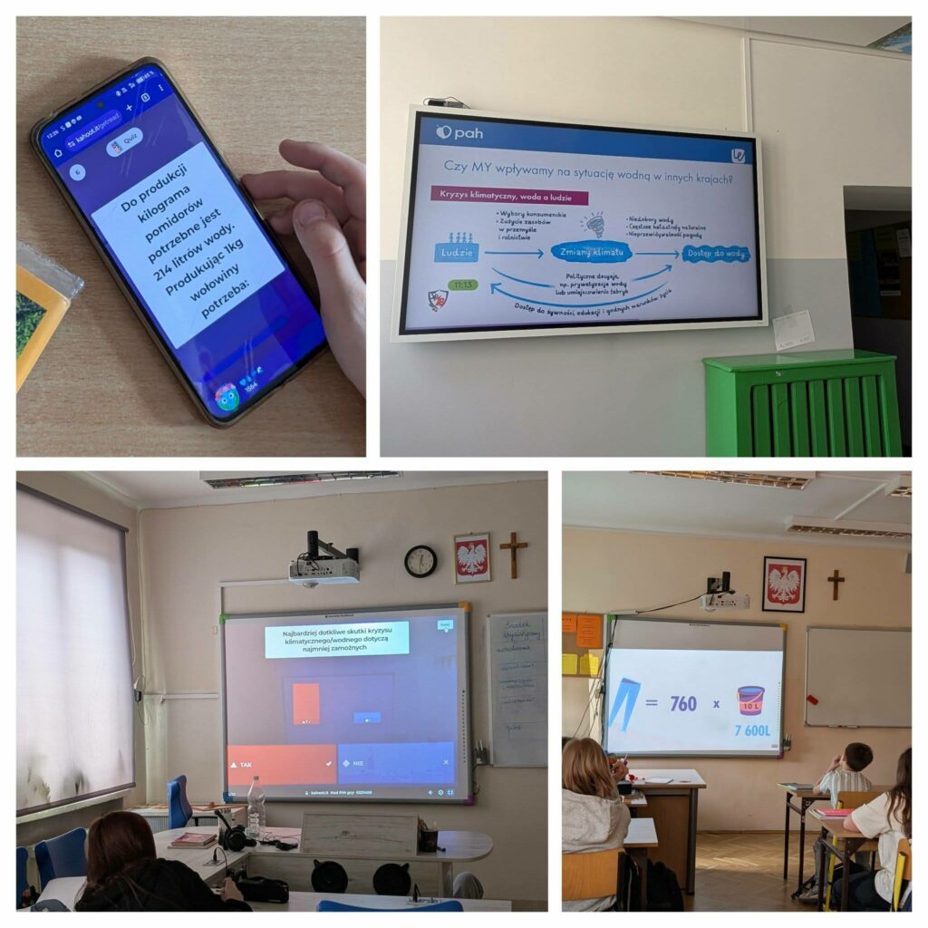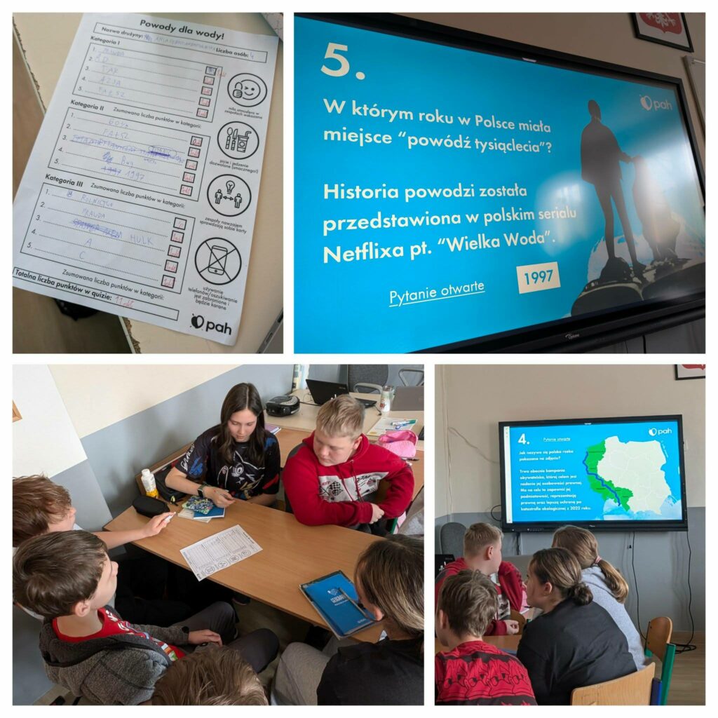 💧Młodsi uczniowie zmierzyli się natomiast z quizem „Woda w kryzysie klimatycznym”. Poruszane w nim zagadnienia przybliżyły trudną sytuację wielu ludzi na świecie oraz pokazały, jak zmiany klimatyczne wpływają na dostęp do wody.