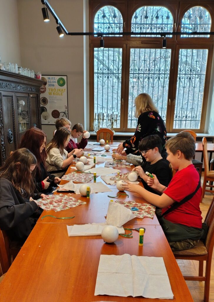 16 grudnia klasa 6a w ramach programu „Wyjście z klasą” odwiedziła Pałac Schoena w Sosnowcu. Uczniowie zwiedzili muzeum, podziwiali wystawę fotografii, a także wzięli udział w warsztatach plastycznych, podczas których wykonali świąteczne bombki techniką decoupage.